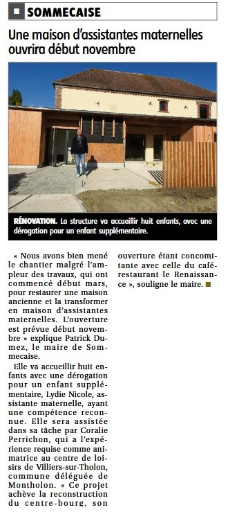 Au-delà de la transformation du cadre de vie, la création d’une Maison d’Assistantes Maternelles (MAM) a pour objet et volonté de répondre à la problématique d’accueil de la petite enfance sur la commune de Sommecaise, et, plus largement, sur les communes environnantes de l’Aillantais.
