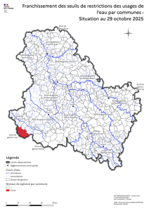 Par conséquent, par arrêté préfectoral n° DDT/SEE/2025/0046 , publié le 1eraoût 2025, le Préfet de l’Yonne a décidé de placer la zone de gestion du Serein– à laquelle appartiennent notamment les communes de Chablis et Noyers-sur-Serein–au même niveau que la zone de gestion du Cousin– dont dépend notamment la ville d’Avallon – à savoir la « crise » sécheresse. Les zones de gestion de l’Armançon Aval, de l’Armançon Amont et de la Cure sont maintenues en « alerte renforcée » sécheresse. La zone de gestion de l’Yonne moyenne, du Loing et de Seine-Est sont, elles, maintenues en « alerte » sécheresse.