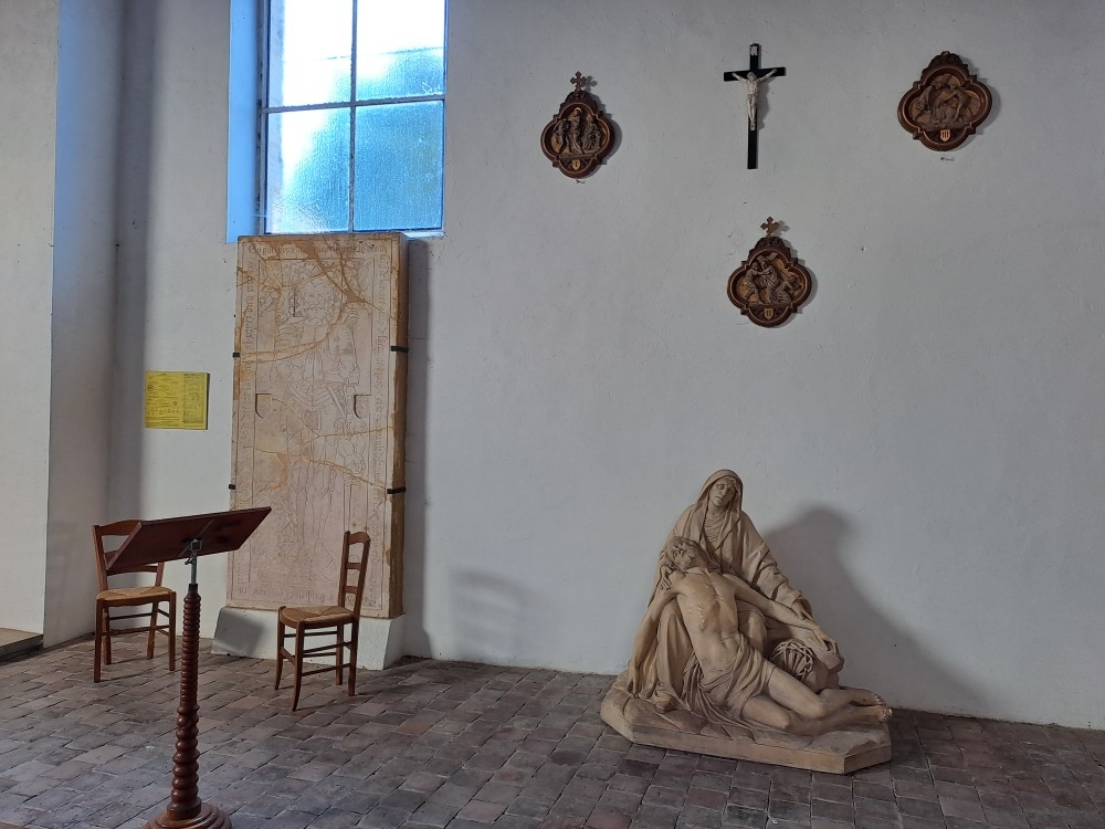 La totalité du Chemin de Croix représenté par des figurines sculptées dans le bois, sous forme de tryptiques, a été nettoyé et replacé sur les murs de l’église.