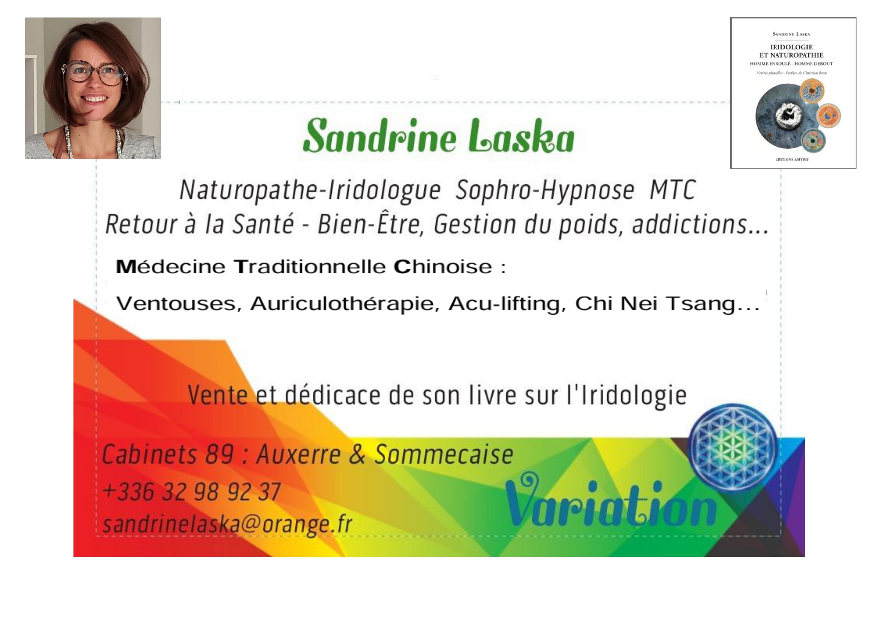 - Sandrine LASKA au 06.32.98.92.37 – 91 Allée des Genets – La Brionnerie – 89110 SOMMECAISE